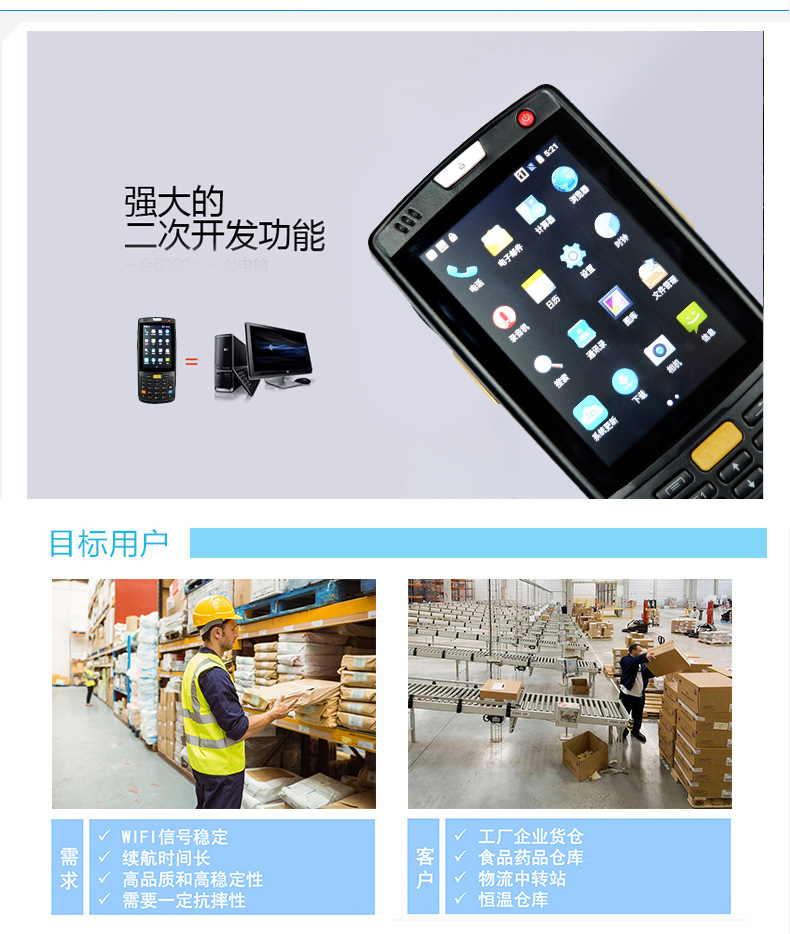 iData 95W采用業內最先進的手持移動終端技術,為企業打造更出色的專業設備,數據采集和傳輸功能更強大,應用更廣泛,使用更便捷,操作更流暢。