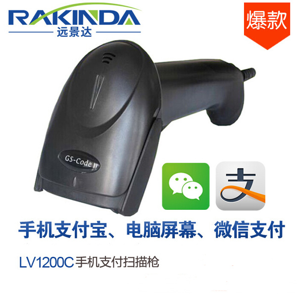 現在我們遠景達科技公司推出的LV1200C一維紅光條碼掃描槍不僅能夠掃描傳統普通的商品紙條碼之外,還能夠對手機、ipad等電子屏幕上面的支付寶付款一維條碼進行掃描。