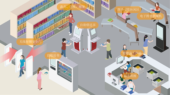 無線射頻辨認(rèn)標(biāo)簽不需求工作人員手動操作,經(jīng)過感應(yīng)就可以向借還機(jī)發(fā)送信息,其發(fā)送的信息包括閱讀所感應(yīng)到的一切材料,繼而實行自動化處置圖書借還的相關(guān)信息。