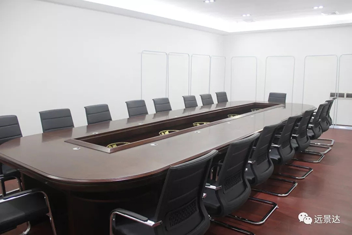 右邊是公司里最大的會(huì)議室,可容納上百人共同開會(huì),一旦遇上一些重大會(huì)議,需要全公司集中開會(huì),那也是沒問題的。