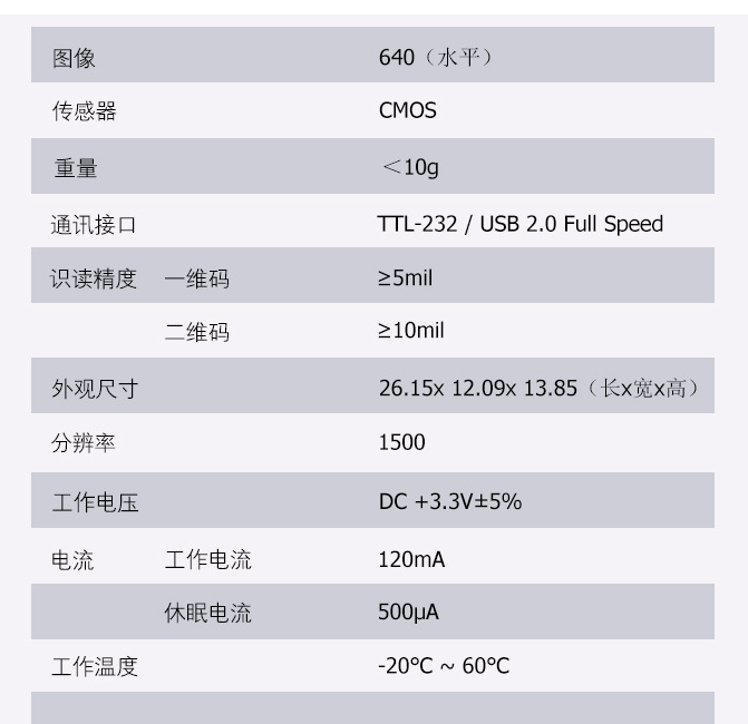 - 采用全鉭電容及抗氧化光學(xué)工藝,避免了傳統(tǒng)掃描槍使用一段時(shí)間后靈敏度下降問題。
