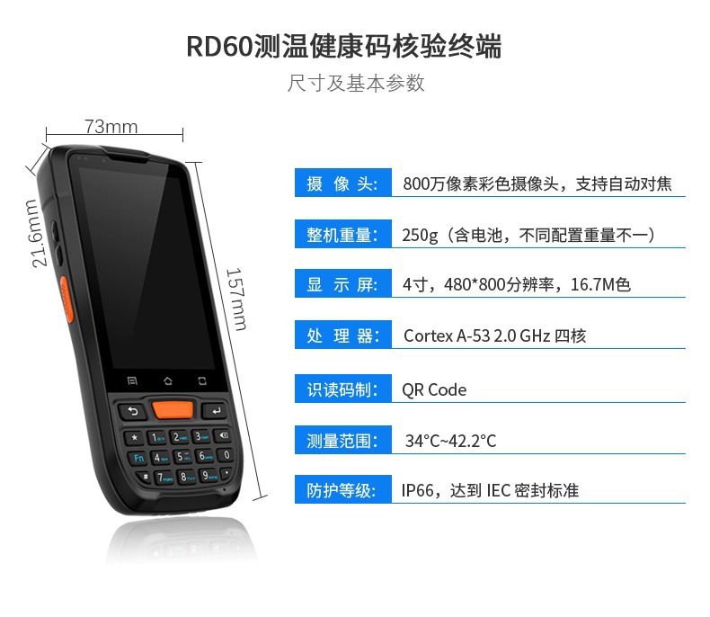 遠景達RD60國康碼識讀PDA 測溫手持機 身份證讀寫儀
