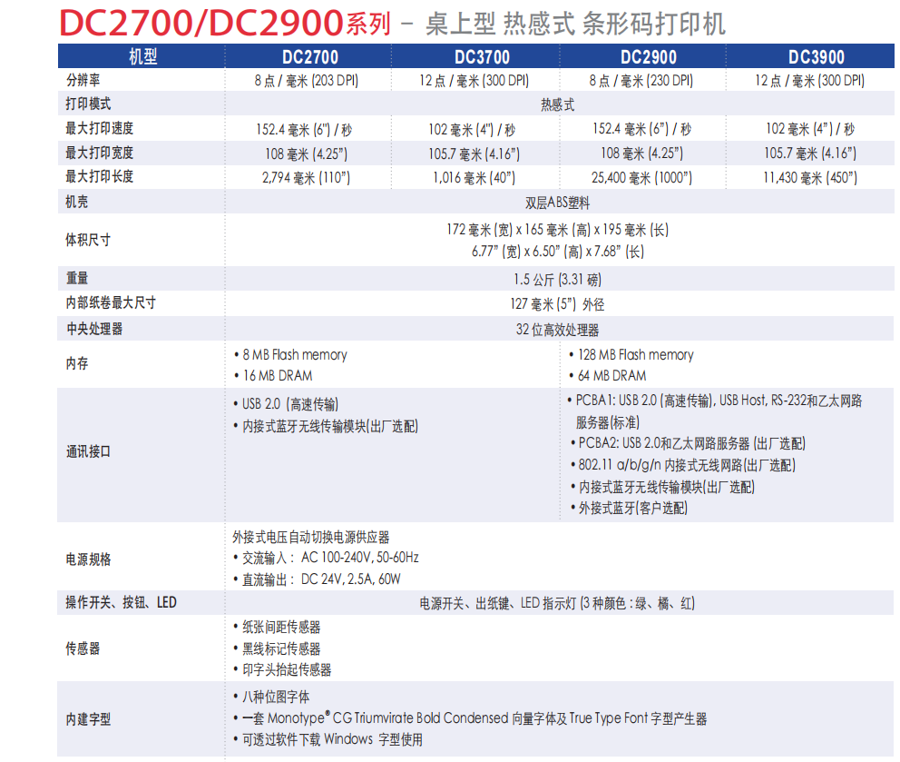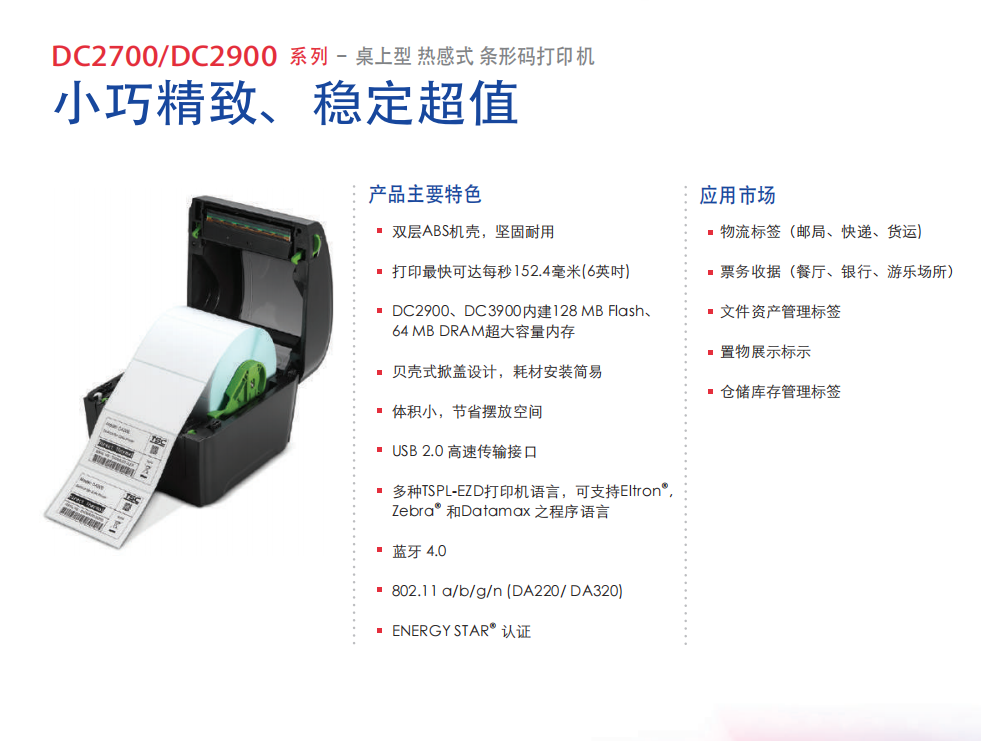 DC2700/DC2900 系列 – 桌上型 熱感式 條形碼打印機 小巧精致、穩定超值