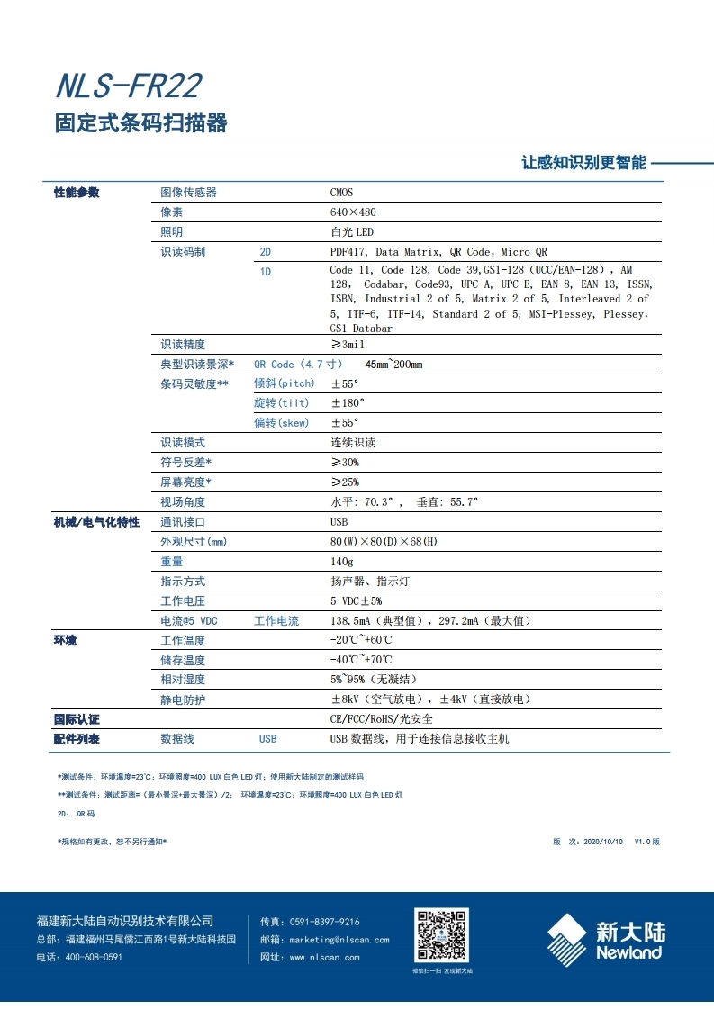 新大陸FR22固定式條碼掃描器 收銀平臺