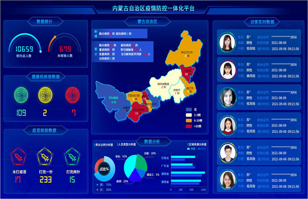 深圳遠景達·內(nèi)蒙古疫情智能防控管理方案可實現(xiàn)多場景應(yīng)用,通過人臉識別,掃描健康碼,刷身份證和網(wǎng)證等身份信息數(shù)據(jù),提供相關(guān)的核查上報、數(shù)據(jù)分析、數(shù)據(jù)報告等服務(wù)。不僅能夠幫助企業(yè)、學(xué)校、社區(qū)、城市進行信息整合,便于進行規(guī)范化、系統(tǒng)化的管理,還能夠幫助政府部門在防疫期間實時、動態(tài)掌控各市區(qū)、社區(qū)、村鎮(zhèn)的疫情情況,進而為合理的決策和部署奠定基礎(chǔ)。