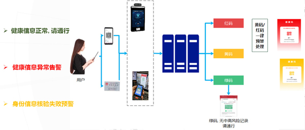 (1)用戶在需要核驗健康信息的區(qū)域,刷身份證或出示“智慧碼”,進行體溫檢測,實名認(rèn)證;