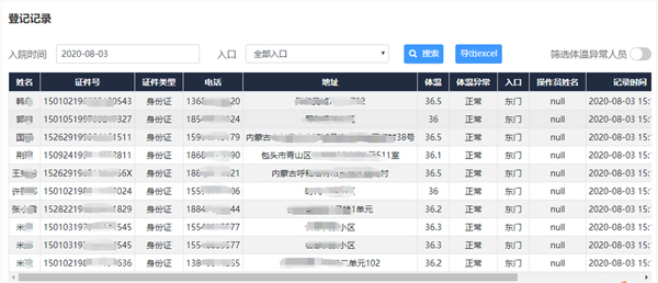 3.4.1 健康碼智能核驗系統(tǒng)--內(nèi)蒙碼、鼠疫碼后臺管理端(通行人員信息實時記錄);