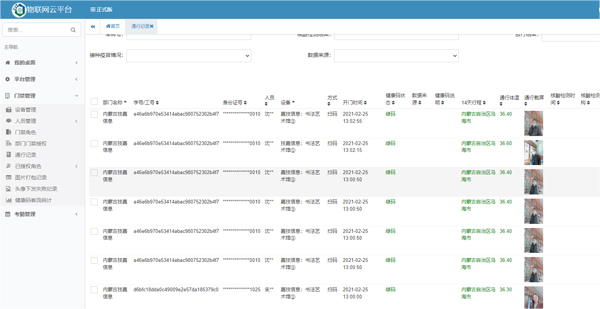 3.4.2 健康碼智能核驗系統(tǒng)--物聯(lián)網(wǎng)大數(shù)據(jù)后臺管理端(通行人員信息實時記錄);